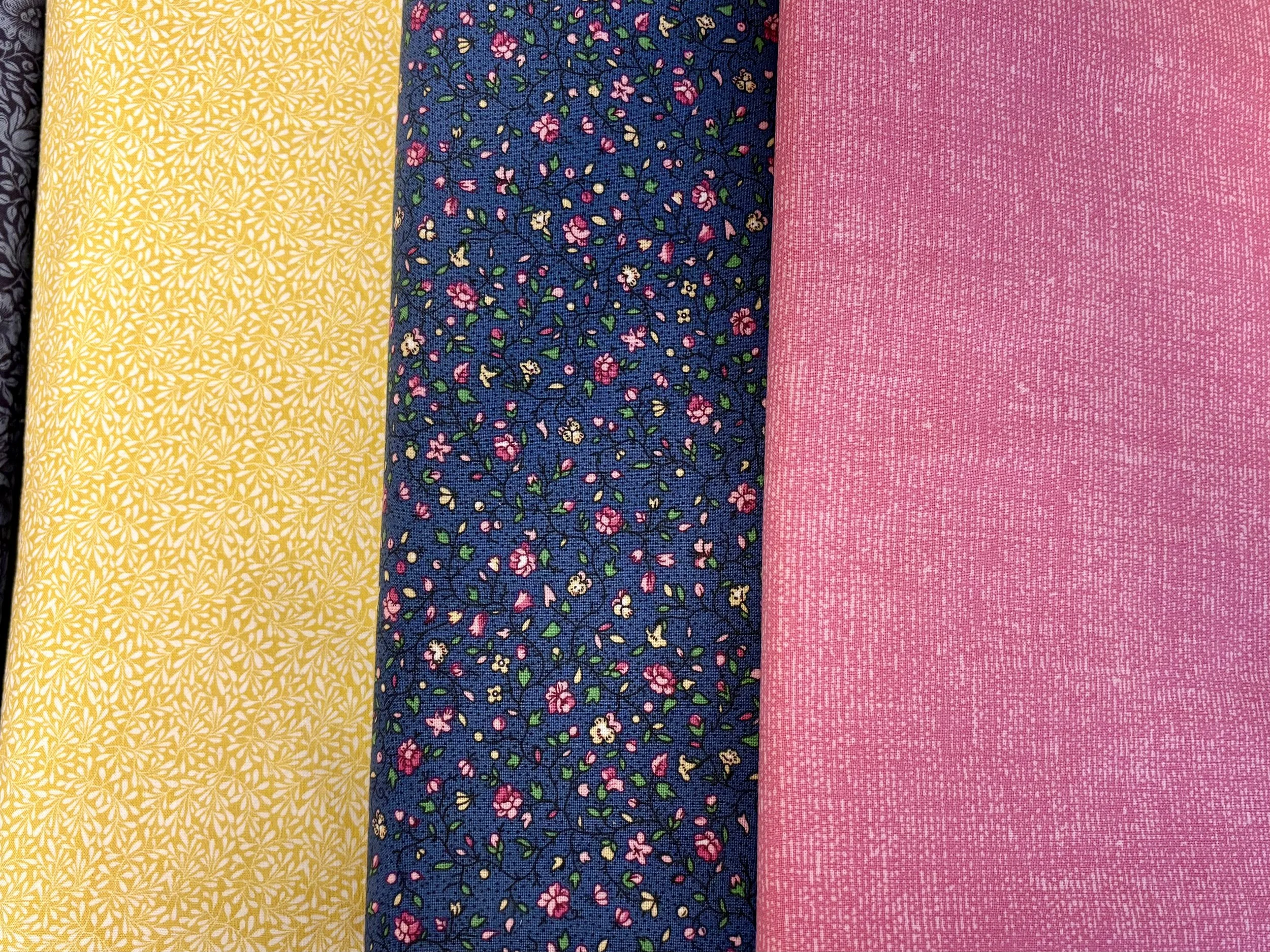 This design is one of the first things I ever sewed as a quilter, so it’s a bit of nostalgia for me, and I’m actually starting on a bright and happy 3-color version to help cheer myself up. Just today I found a new yellow that will be perfect with the tiny blue floral and the pink that I already had on hand. Hooray for fabric shopping, and hooray for shopping my stash!